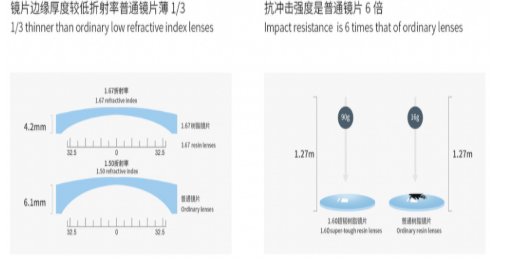 • High refractive index, high definition, high Abbe, and strong resistance to impact