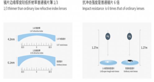 • High refractive index, high definition, high Abbe, and strong resistance to impact