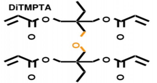 Polyol acrylate has the characteristics of low volatility, low toxicity, high crosslinking density and fast curing speed. It is the most commonly used photocurable active monomer.Compared with TMPTA, DI-TMPTA has less acrylic content, which reduces the cross-linking density appropriately, which can reduce the serious shrinkage generated when the material is cured. At the same time, the molecular structure is large and there are flexible ether bonds,can ensure that the material has better elasticity and toughness after curing, and the brittleness is improved.
